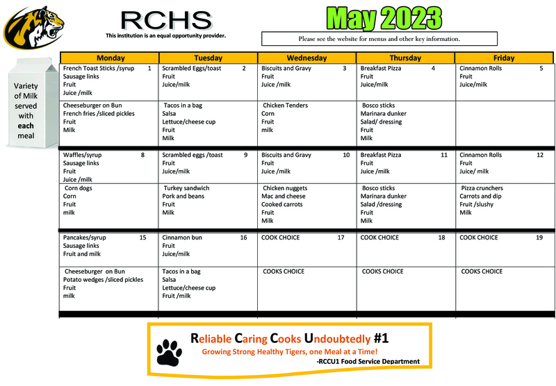 May 2023 RCHS Lunch Menu